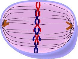 The already replicated chromosomes line up at the equator of the cell (the metaphase plate). This is where most mitotic errors occur, as it determines the separation of sister chromatids.