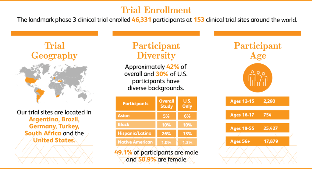 The Phase 3 clinical trial was designed to determine if the Pfizer-BioNTech COVID-19 vaccine is safe and effective in preventing COVID-19 disease.