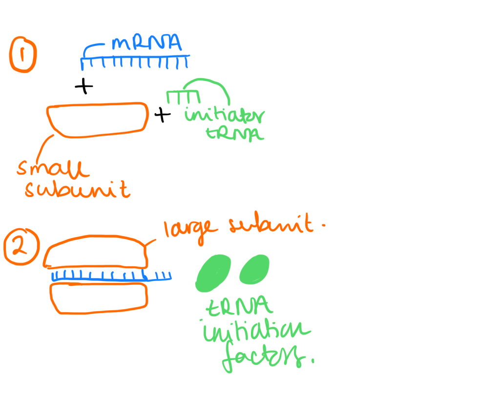 Ribosomes are composed of 2 rRNA subunits (which are integrated with proteins) that wrap around mRNA to initiate the translation section for protein synthesis.