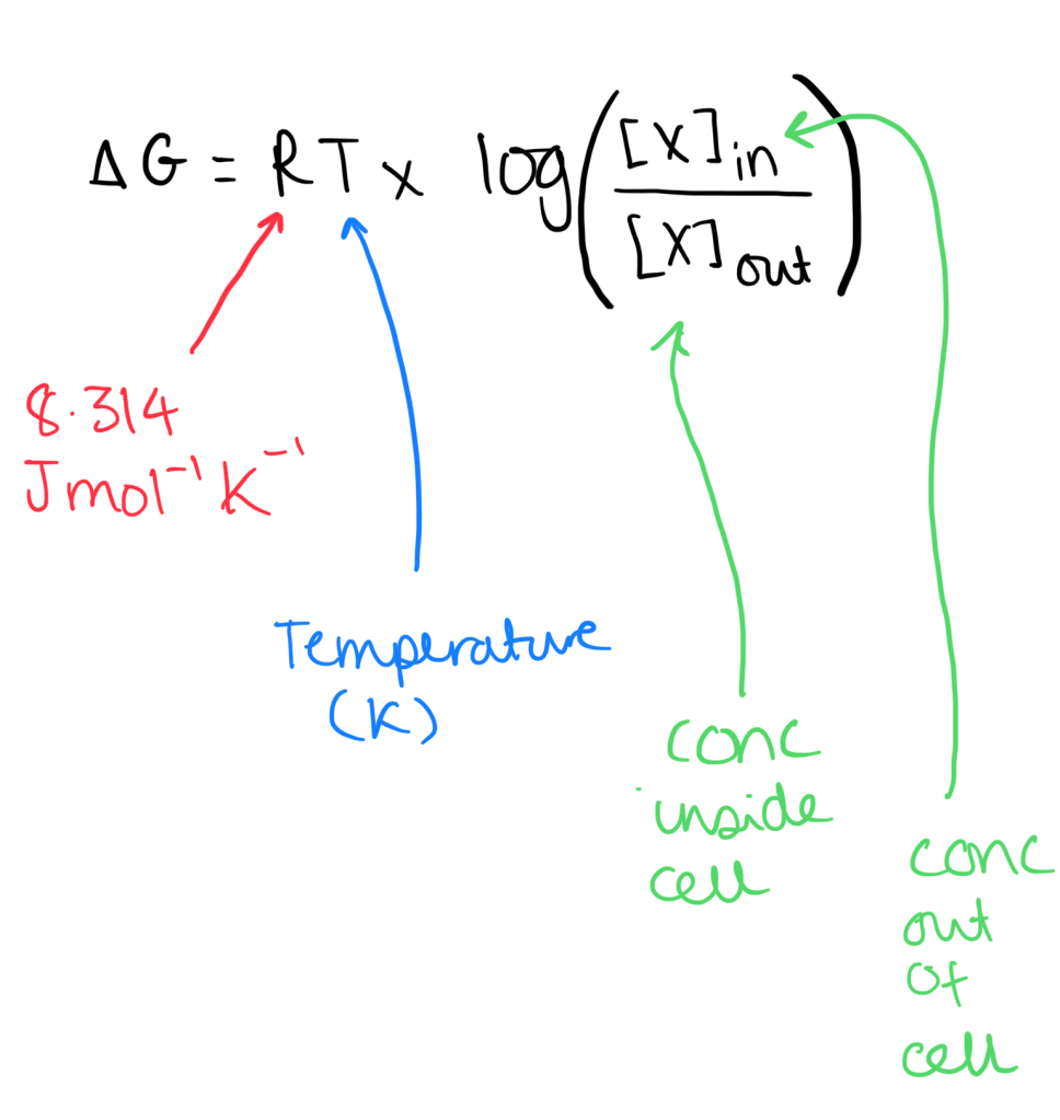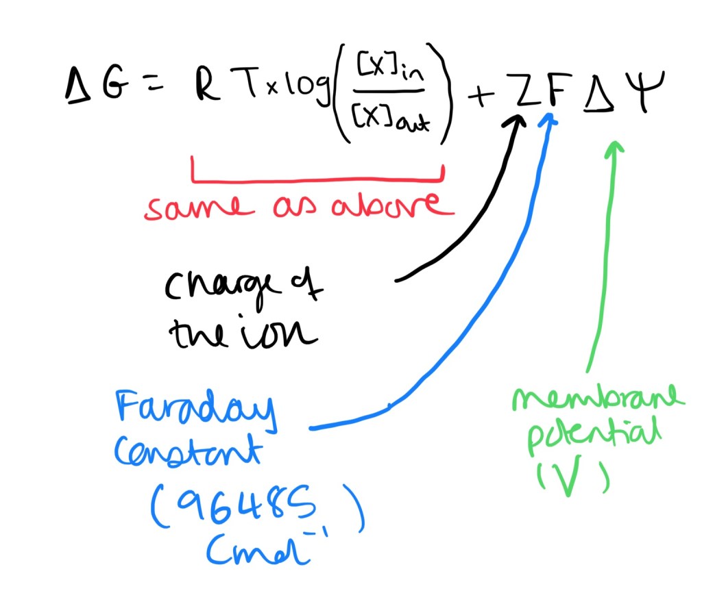 - Formula for ions – since they are charged we have to observe the electrical gradient (this is the membrane potential).